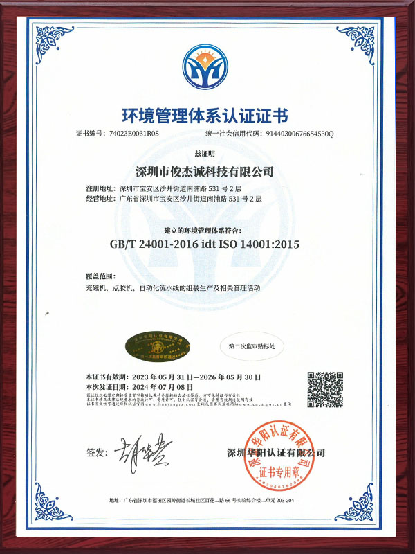 环境管理体系认证证书